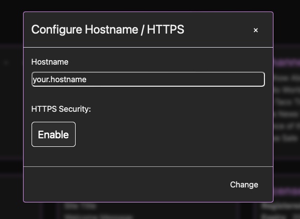 Use this to set the hostname of the server, or to enable HTTPS. You should always access the server by its hostname rather than the internal IP address.