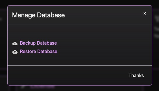 Streamwell uses a SQL database which makes backup and restore very robust. Simply click backup to download a database file, or restore to upload one. If your database is from a previous version of Streamwell, it will be automatically updated like magic.