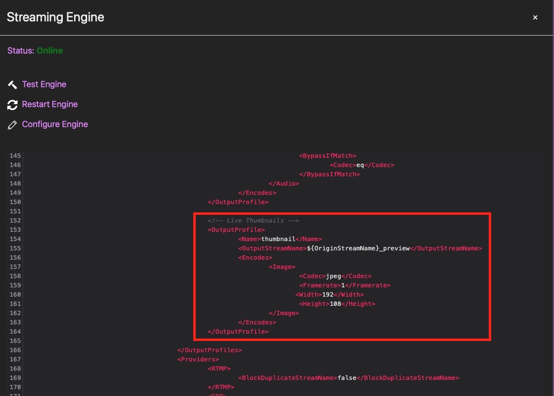 1\) Under Administration -> Server -> Engine Control -> Configure Engine, there are two sections marked *\<!-- Legacy HLS -->* with \<HLS>\</HLS> configurations that are commented out. Uncomment these, commit the configuration, then restart the engine.