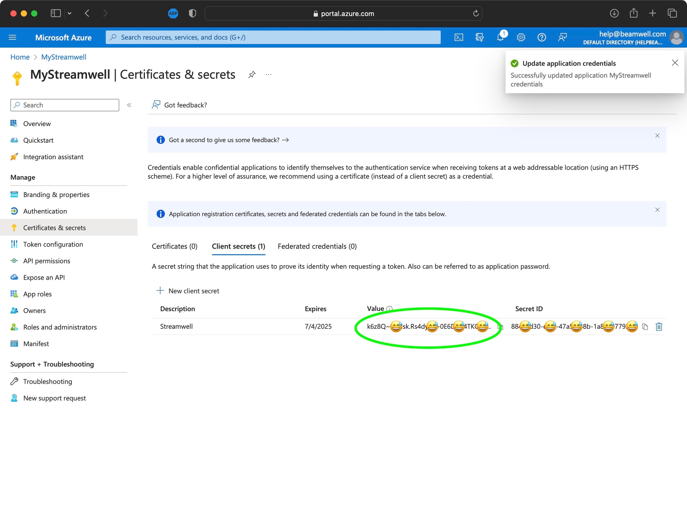 Don't forget to update your client secret before it expires!