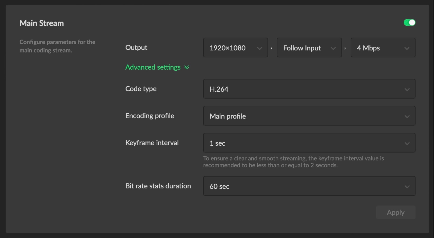 The Ultra Stream is compatible with RTMP or RTMPS for sending live streams, and the Ultra Encode adds SRT and H265 to the list as well. Regardless of which stream protocol you use, make sure your H.264 encoding settings are suitable for Streamwell (specifically main or baseline profile and a keyframe interval of 2 seconds or less):