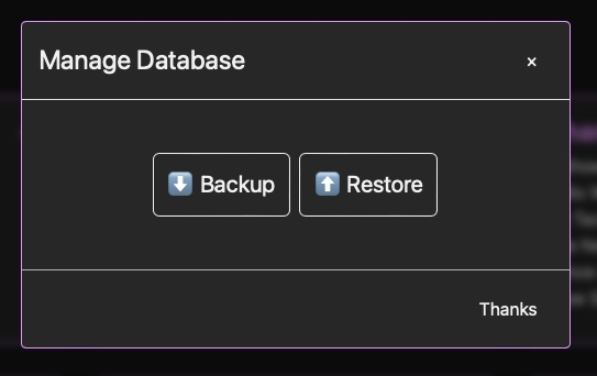Streamwell uses a SQL database which makes backup and restore very robust. Simply click backup to download a database file, or restore to upload one. If your database is from a previous version of Streamwell, it will be automatically updated like magic.