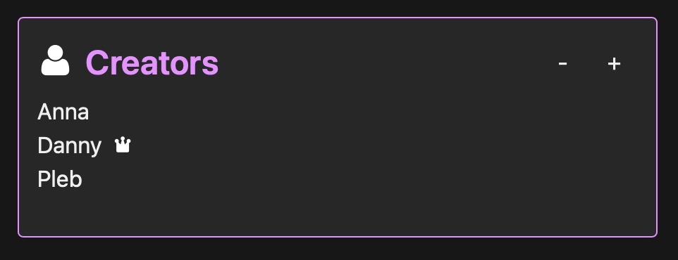 A crown icon will appear next to any creators with admin privileges: