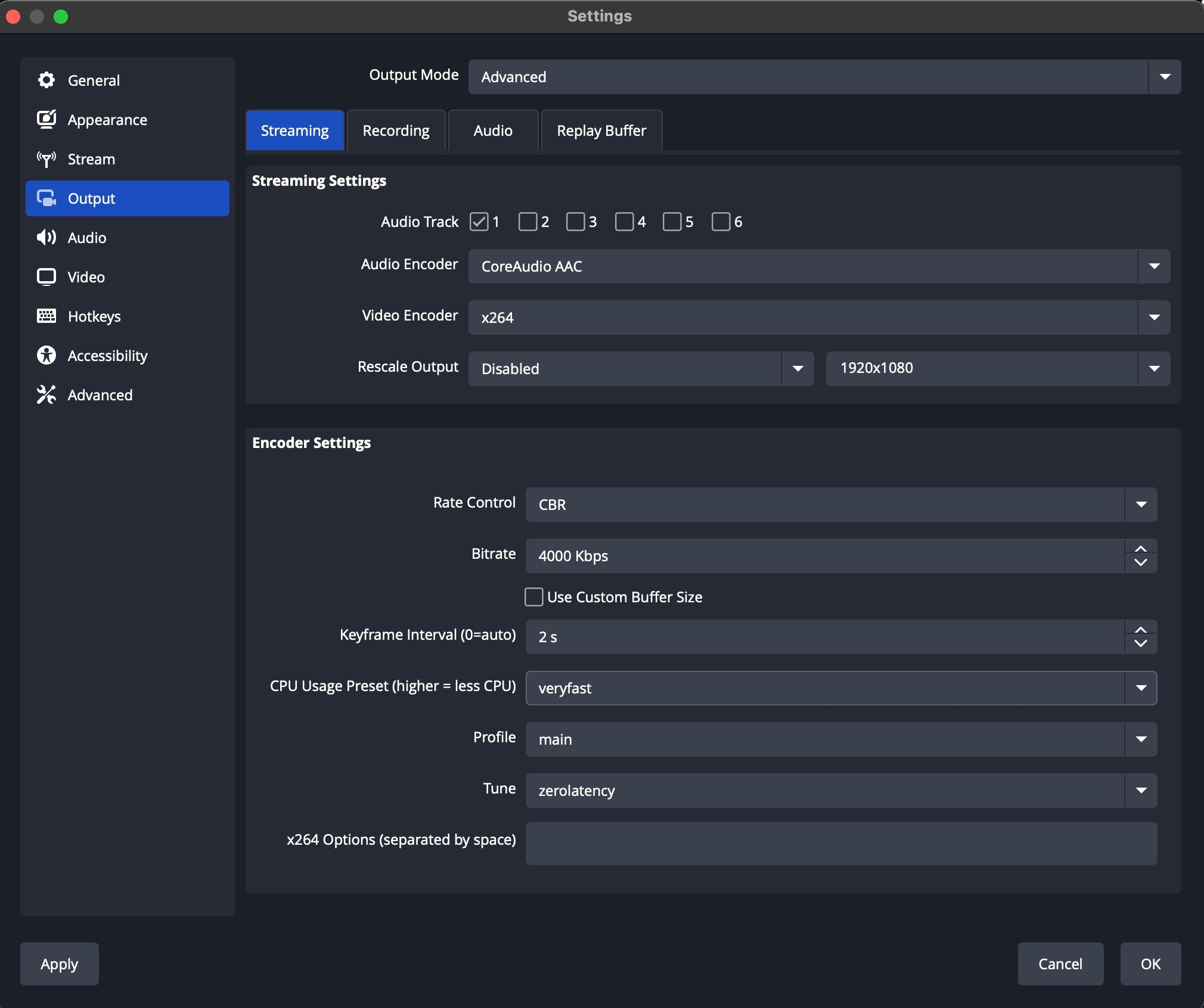 Note: If you are using the Apple Hardware encoder, certain system-level activities like transcoding / screen recording / sharing can interfere because they will always get priority over a live stream. If you need to use the "Media Engines" in your Mac for anything besides the stream, we suggest using the x264 software encoder for better stability.