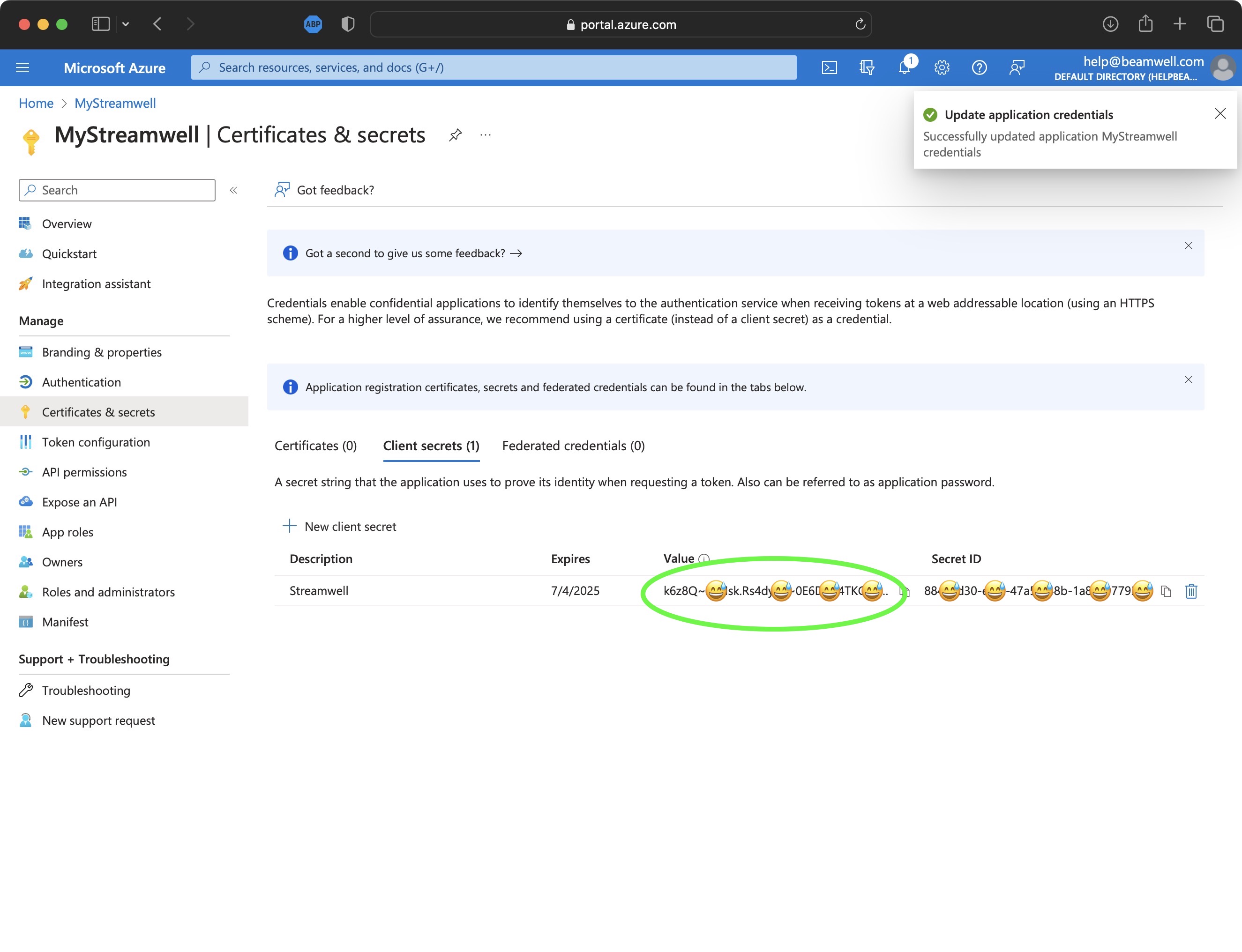 * **Don't forget to update your client secret before it expires!**