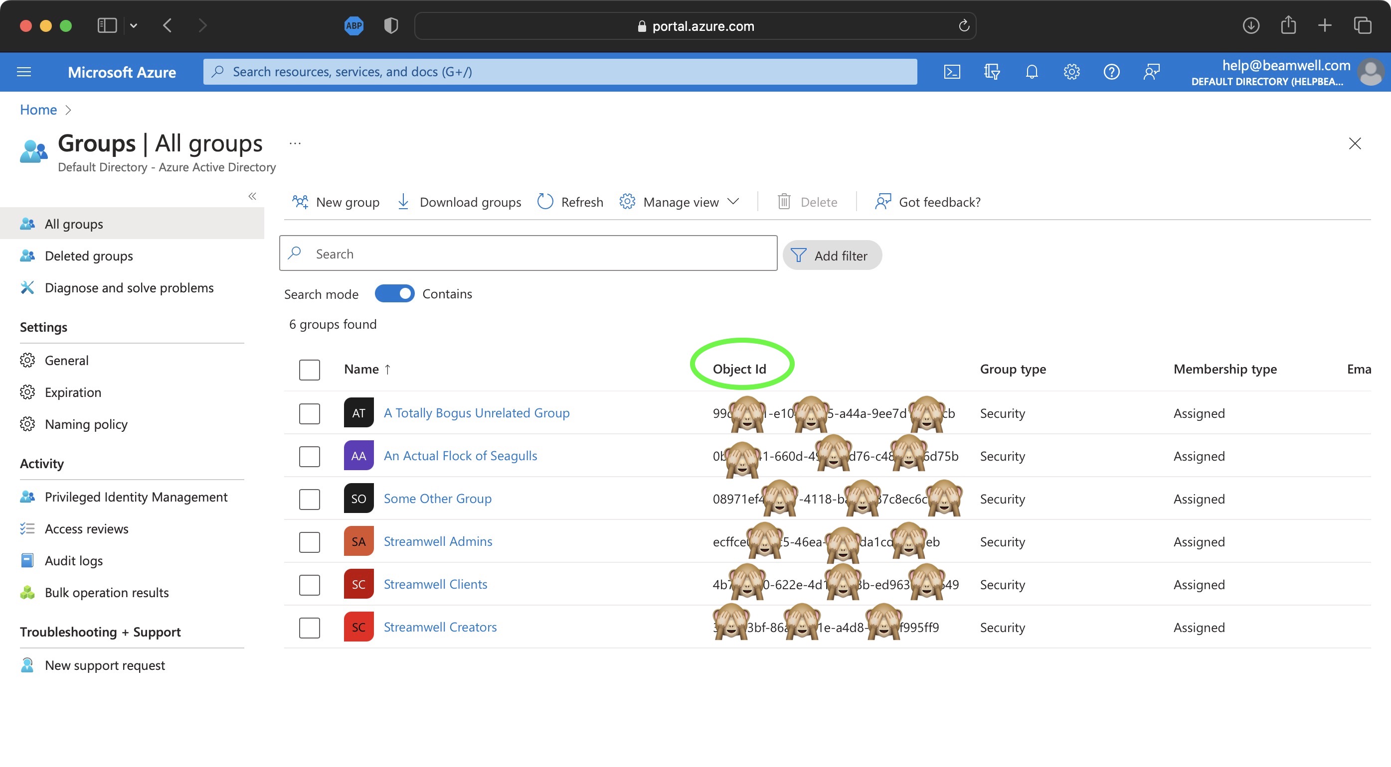 Finally, either create or designate groups for the three possible roles: **Admins, Creators and Clients**. Take note of the applicable group IDs (you can map multiple groups to a role). When users log into Streamwell, which group they are in determines which role they will get.