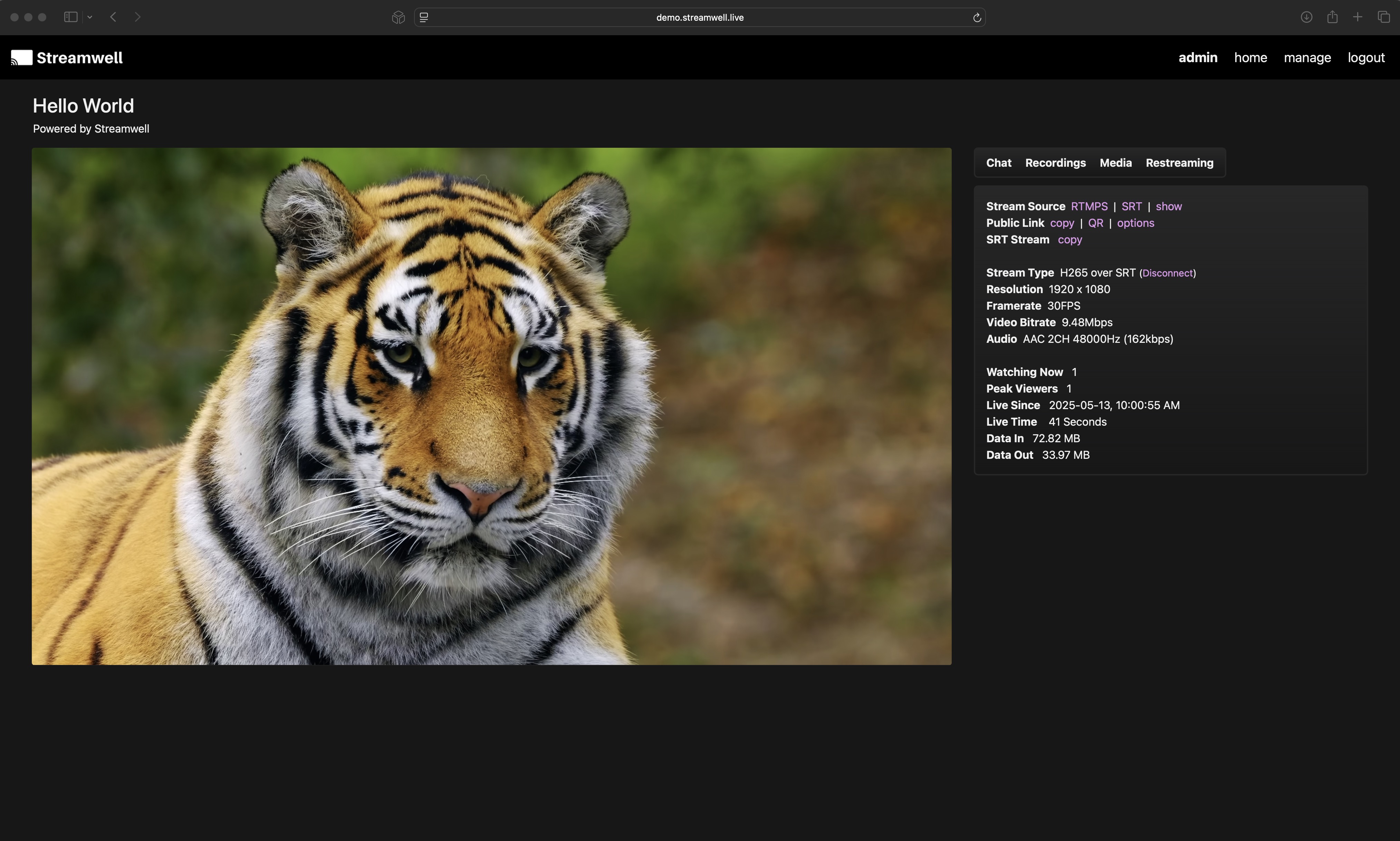 * You can log in to view streams, or share public links for one-tap access. Viewers can press 'T' to toggle a focused, minimal player, 'M' to mute or unmute, or 'F' to toggle fullscreen on or off.