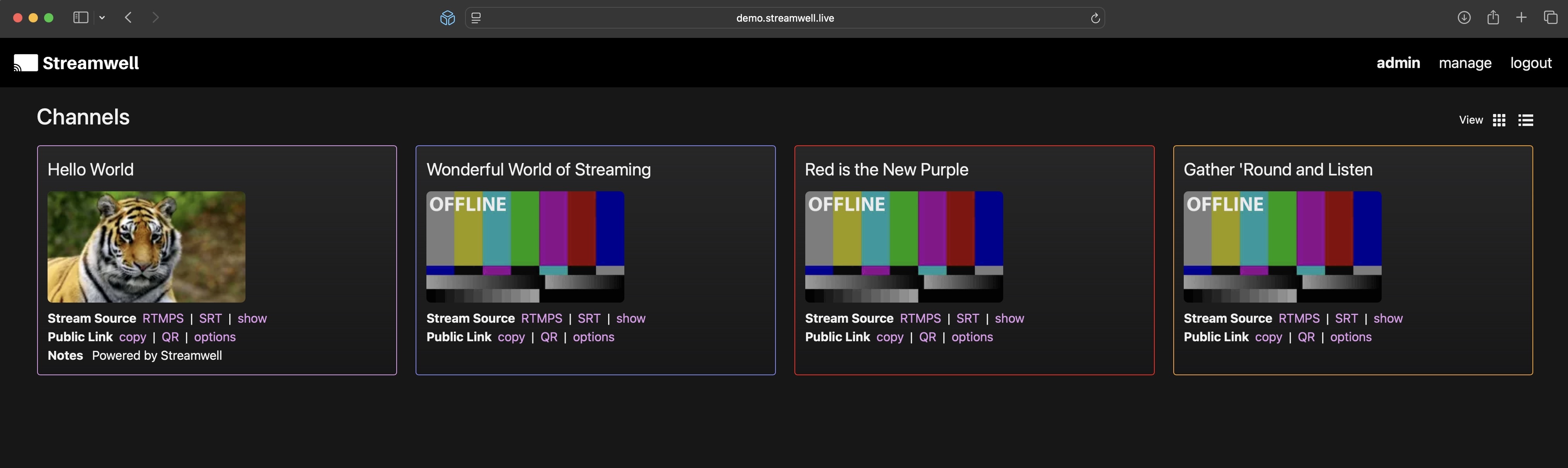 * On the home page, copy one of the stream URLs for the channel you just created.
