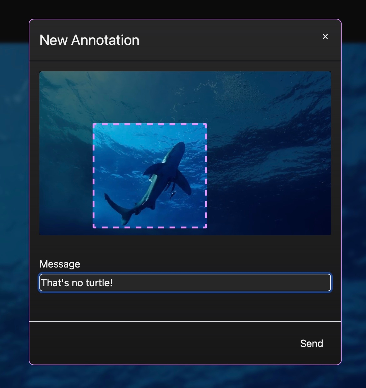 You can also place a "pin" or drag a box on a freeze frame if you want to highlight a particular area of interest. Just click the pin icon on the player, drop a pin (or drag a box) and enter your comment: