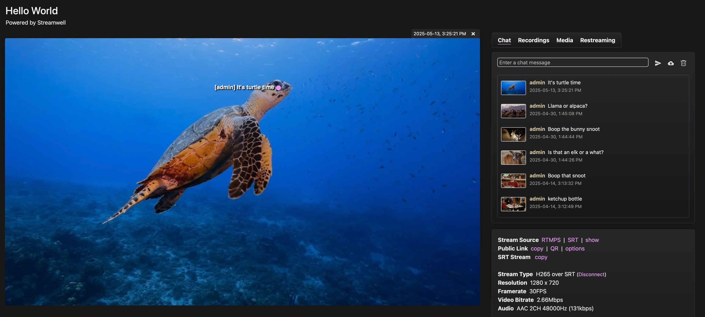 Streamwell includes a simple chatroom for every channel. This can be enabled under Administration -> Server -> Features -> Chat