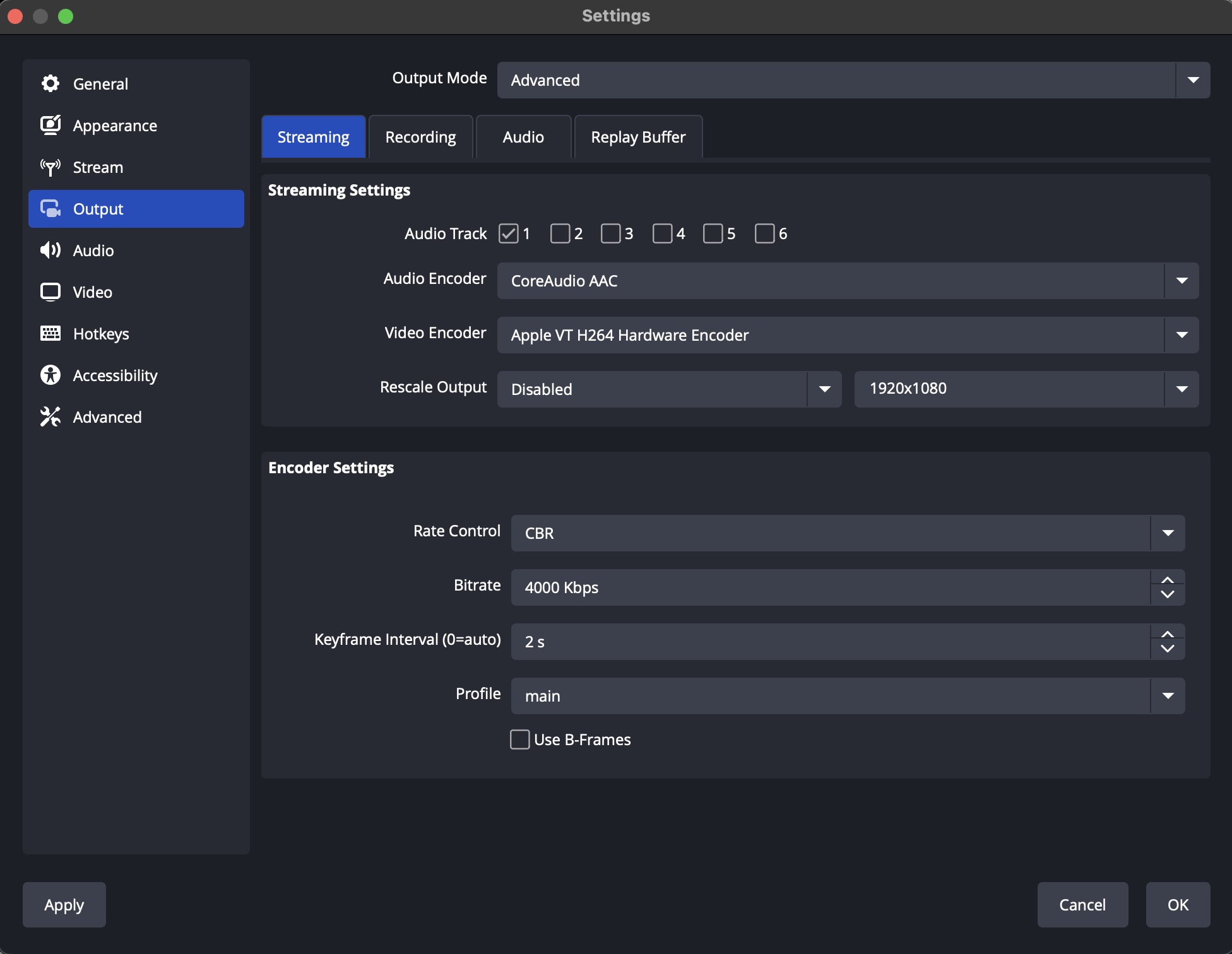 Note: If you are using the Apple Hardware encoder, certain system-level activities like transcoding / screen recording / sharing can interfere because they will always get priority over a live stream. If you need to use the "Media Engines" in your Mac for anything besides the stream, we suggest using the *x264* software encoder for better stability.