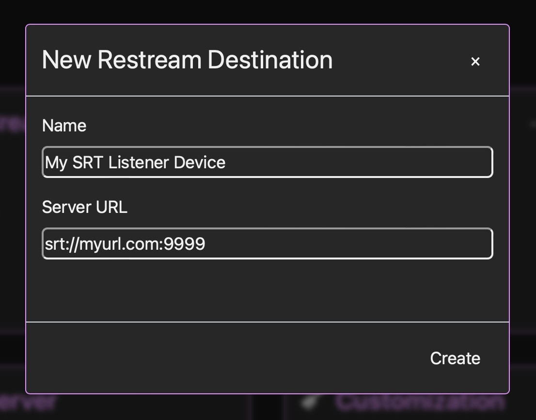 Restreaming lets you define custom RTMP or SRT destinations, then create 'restreams' for any channel with a stream you'd like to push to one of those destinations.